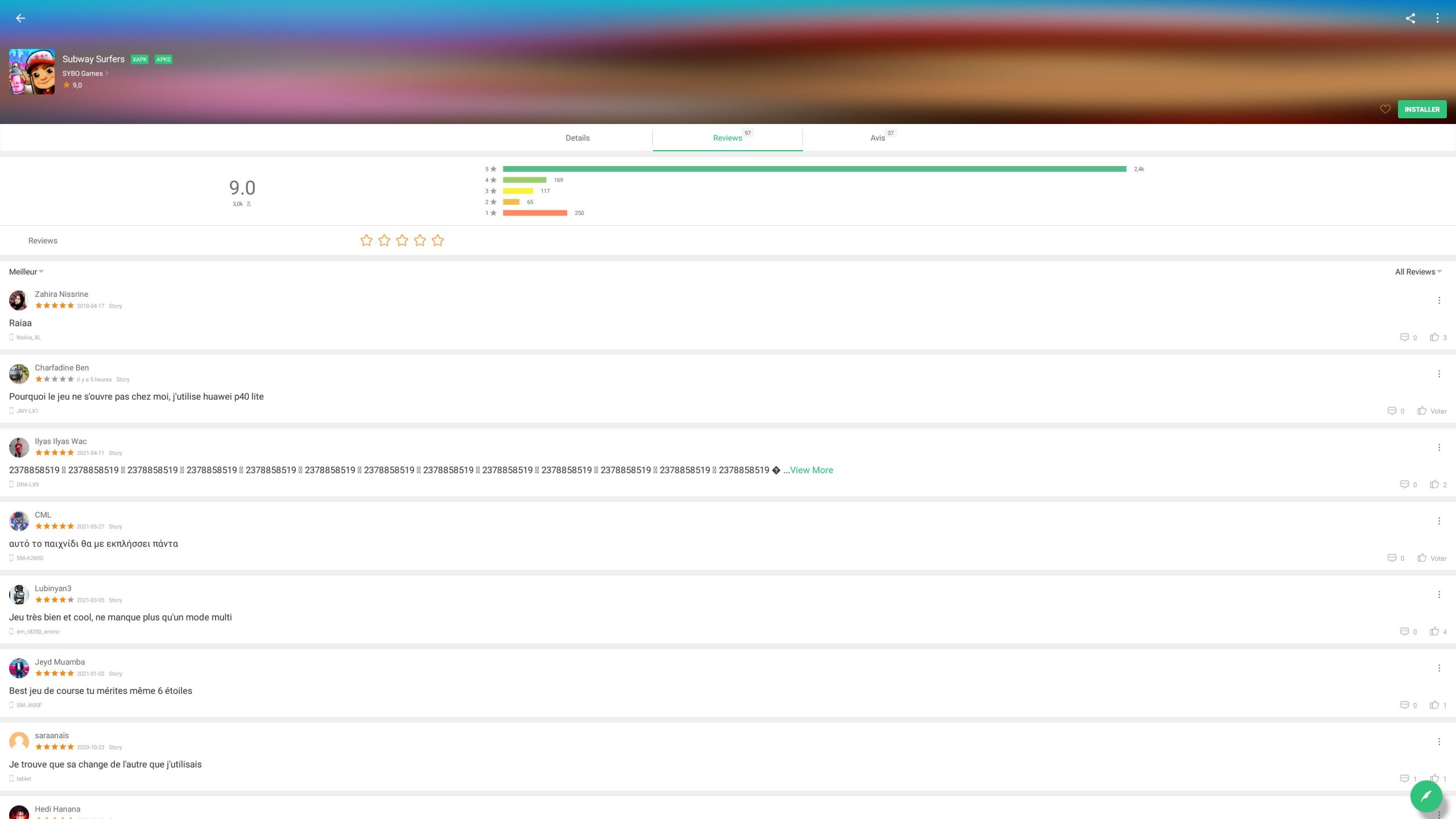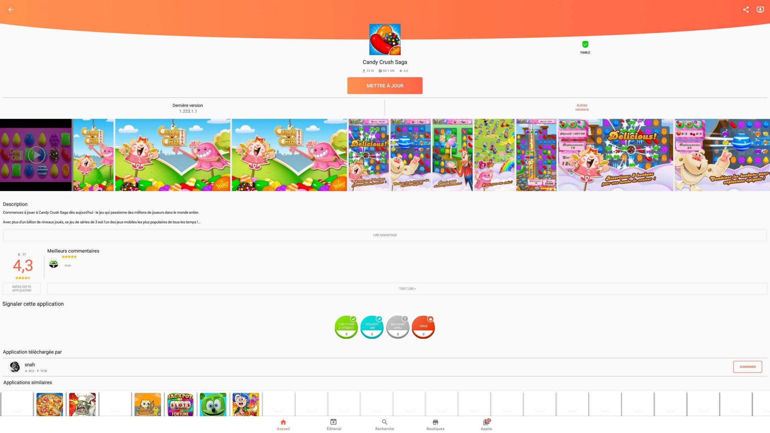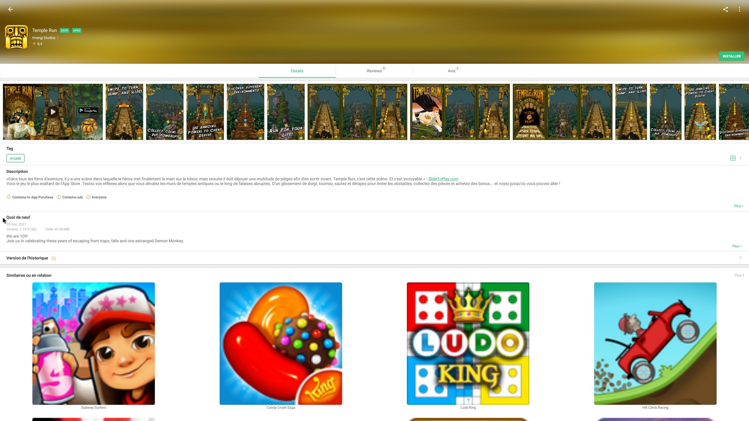 Chaque application contient une page avec un aperçu et des avis sur l’application, et plus particulièrement une version antérieure de l’application, ce qui être pratique pour résoudre certains problèmes de compatibilité.