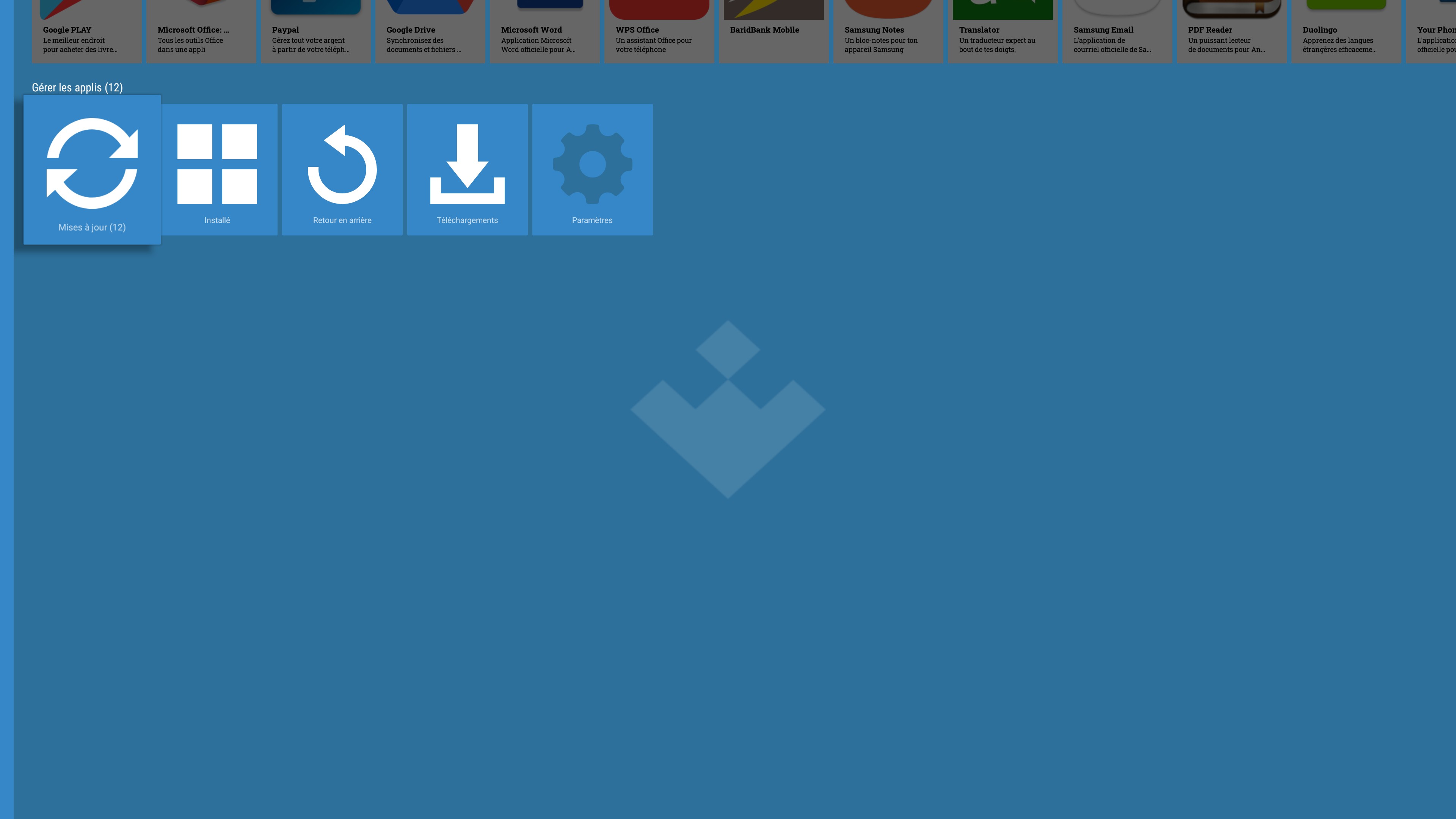 La section « Gestion de l’application » vous permettra de gérer vos installations, vos téléchargements et de télécharger les mises à jour des application installées sur votre appareil, même installées via un autre moyen.